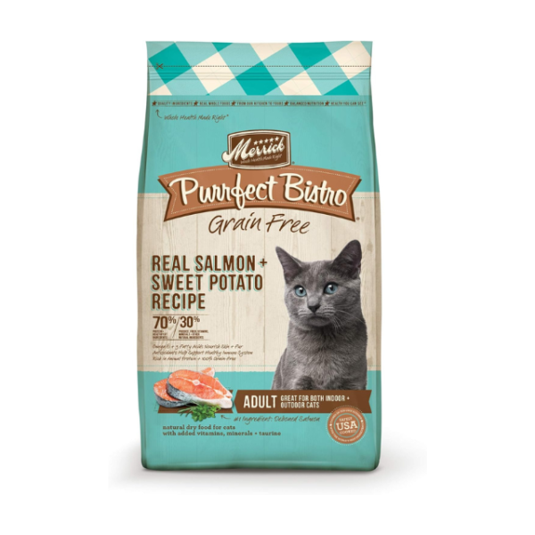 Purrfect Bistro Grain-Free Cat Food – Salmon & Sweet Potato, 4 lb Bag.
