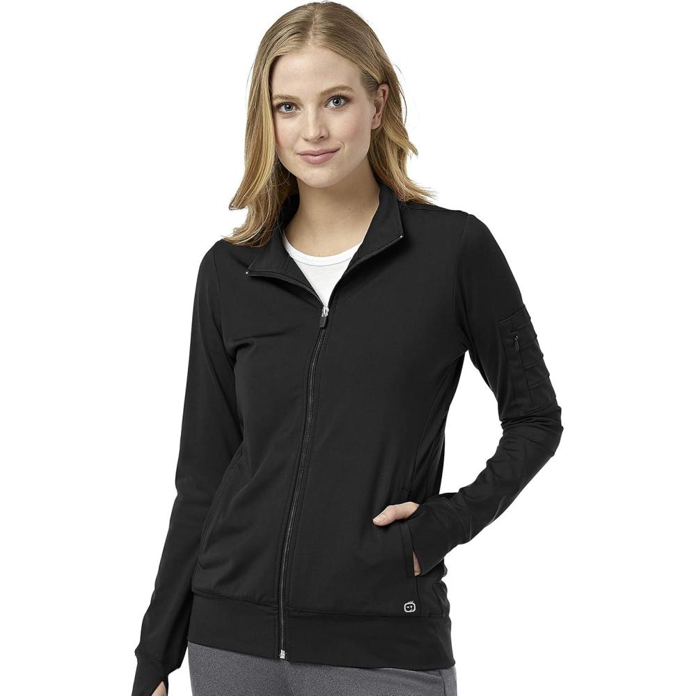 WonderWink womens Women’s Moto Scrub Jacket(Black)
