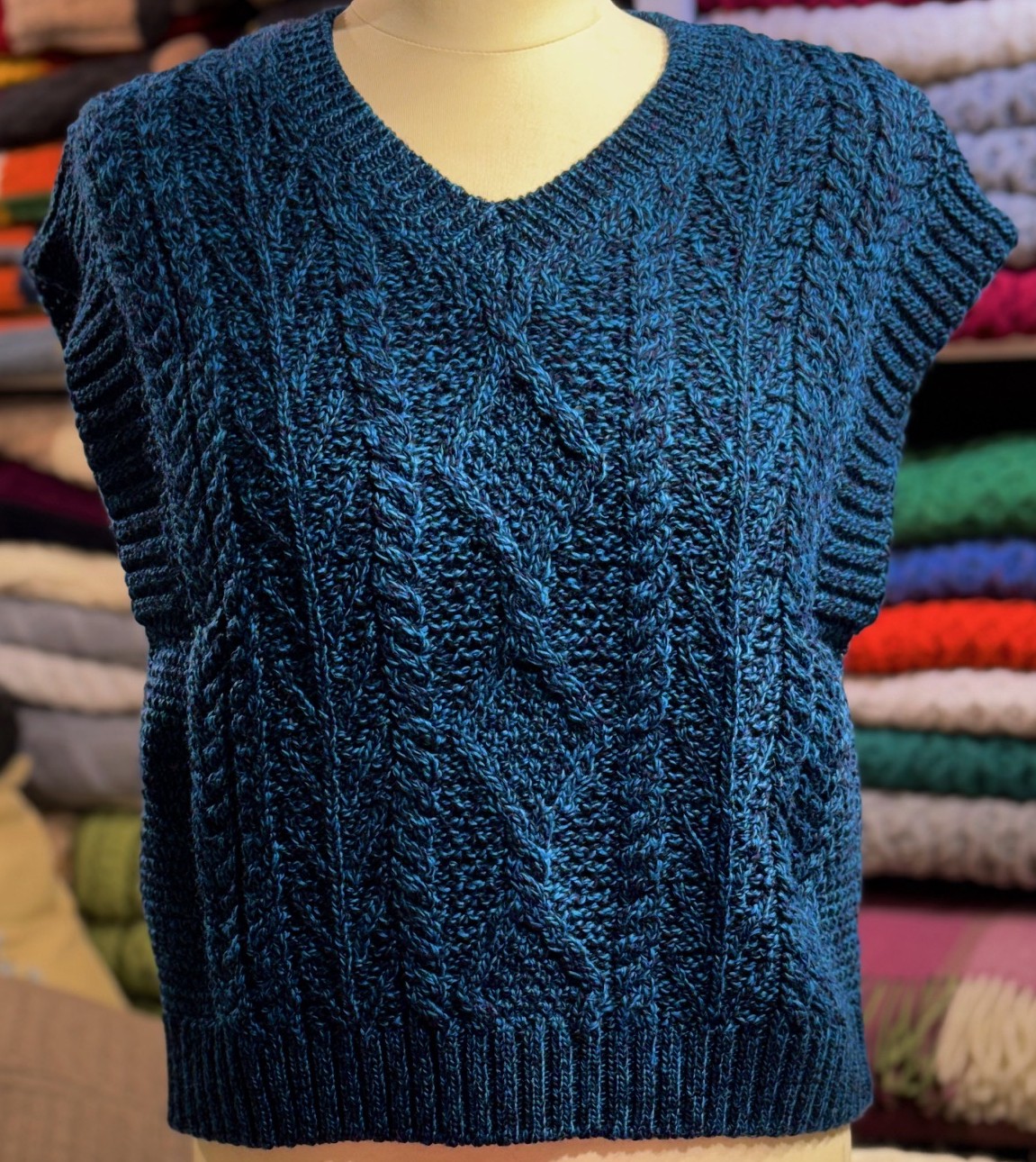 Description Chic smart casual zip jacket. The predominant stitch on this garment is symbolic of the small fields of the Aran Islands. This Aran pattern runs vertically for a more slimming fit. Side pockets and beautiful Trinity knot zip puller makes this a very elegant garment. Aran Patterns: Trellis : Symbolic of the small drystone walled fields of the Aran Islands Fisherman’s rope : Safety and good luck when out on high seas Irish moss stitch : Carrageen moss harvested at low tides on Aran Islands Shores Made in Ireland from 100% Merino wool All our sweaters come with card illustrating and explaining the Aran Stitches Colours vailable : Blue, Oatmeal, Burgundy. Sizes available : Small to XX-Large View Our Size Guide Here